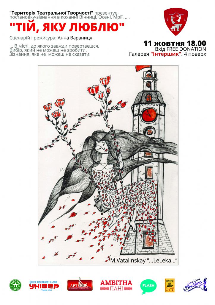 У вівторок, 11 жовтня, в «Галереї АртШик» відбудеться прем’єра вистави «Тій, яку люблю» від «Території Театральної Творчості».