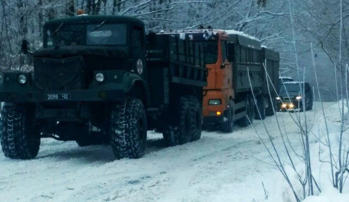 Поблизу селища Вороновиця сьогодні близько 13:20 рятувальники витягли зі снігового замету автомобіль MAN. У кабіні вантажівки було троє людей, серед яких трьохрічна дівчинка.