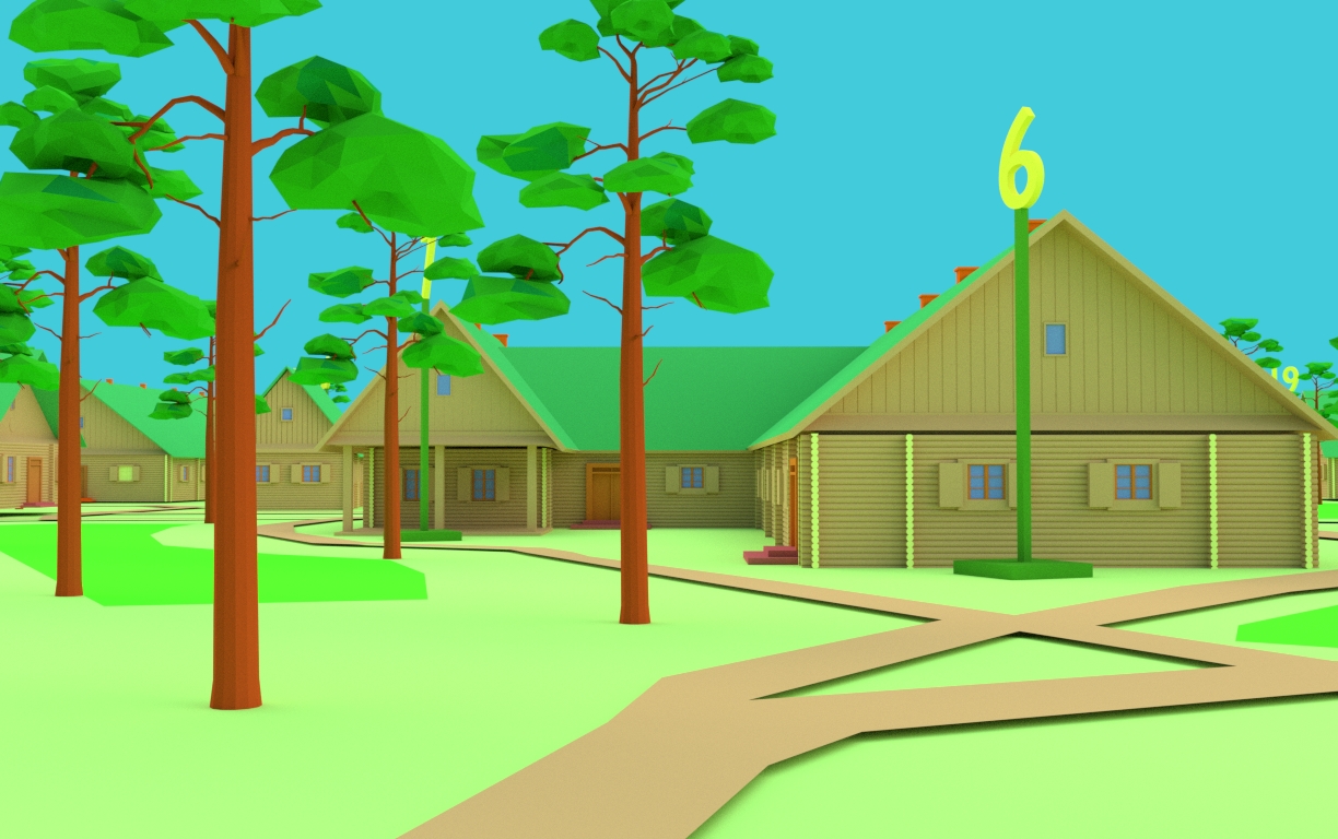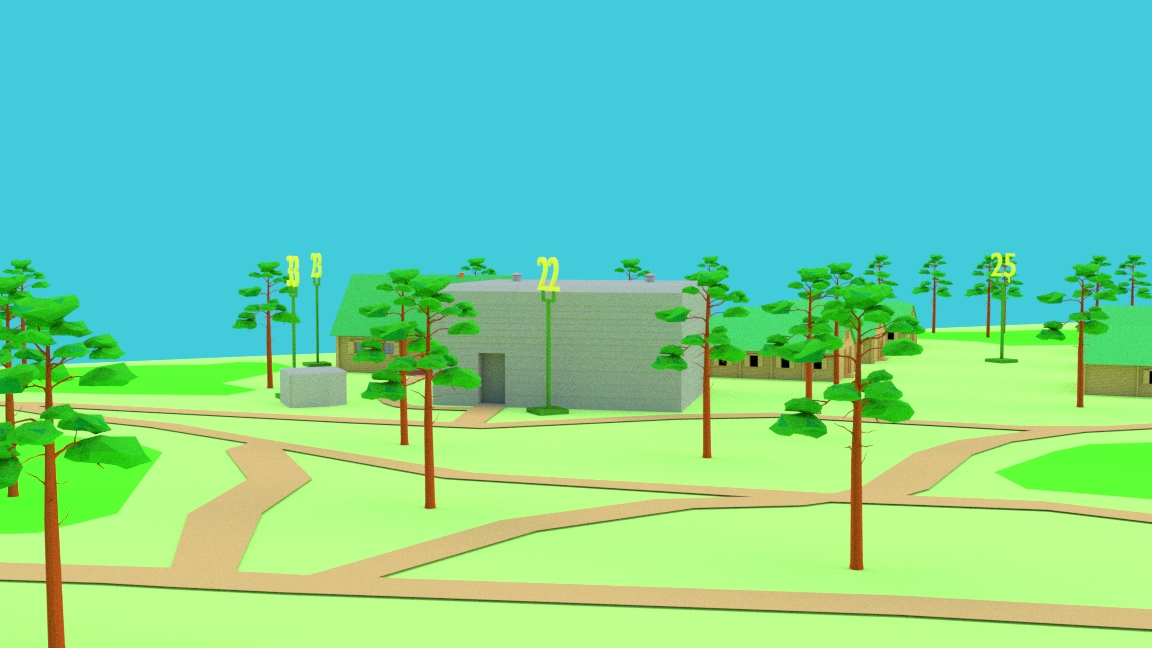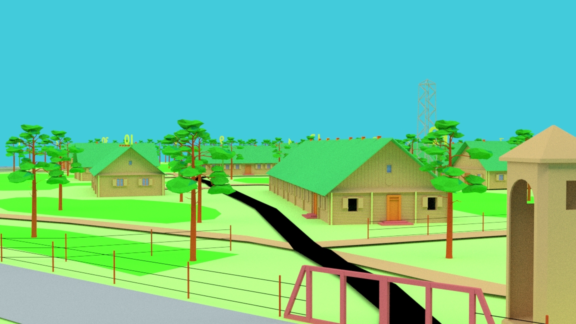 На схемі-макеті розміщено понад 600 стилізованих копій дерев (сосна). Також, розташовані сучасні музейні приміщення, екскурсійний маршрут. Кожний об’єкт пронумерований відповідно до інформаційної таблички. Будинки і споруди виготовлені із використанням 3D–друку (ABS plast), дрібніші елементи – за технологією фотополімерного друку (SLA).