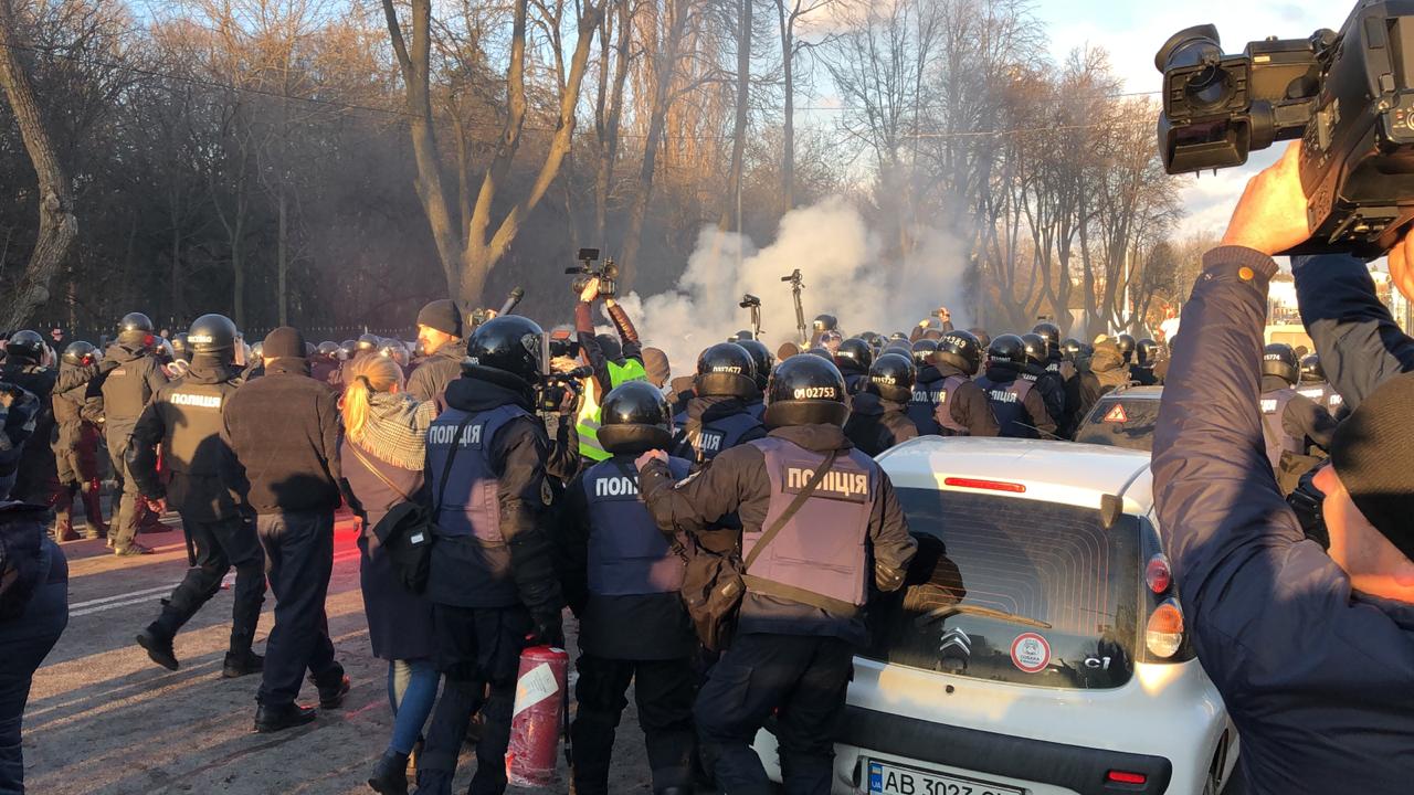 Сьогодні, 27 березня, під час проведення масових заходів поліція затримала трьох осіб – двоє вінничан, один киянин, які застосували до поліцейських газ дратівливої дії, піротехнічні засоби, кидали в правоохоронців камінням.