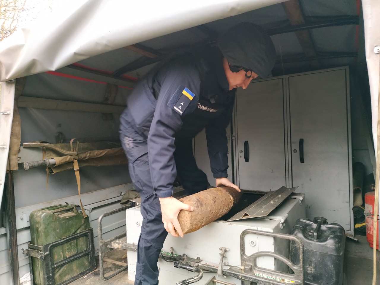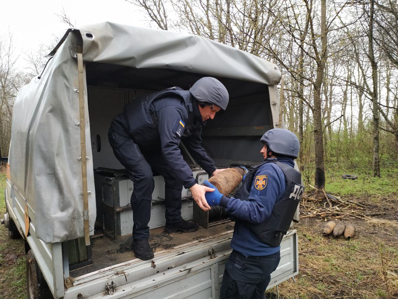 Рятувальники обстежували місцину після того, як тамтешні жителі під час польових робіт та пошуків металобрухту натрапили на чотири 152-міліметрові артснаряди та два 76-міліметрових. Ці небезпечні знахідки піротехніки підірвали ще вчора, 11 квітня.