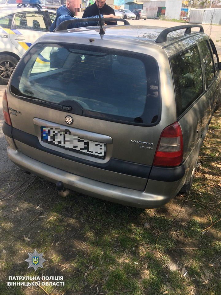 У Вінниці 23 квітня під час відпрацювання виклику про грабіж патрульні неподалік автовокзалу «Західний» звернули увагу на автомобіль Opel Vectra, в якому сиділи двоє чоловіків. В автівці працював двигун, а водій з пасажиром вживали речовину, схожу на наркотичну.