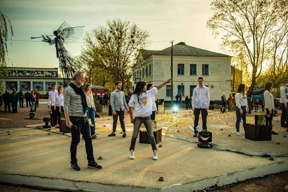 Глядачі та гості арт-перформансу зібралися на площі біля «Янгола-Сурмача» – символічного монументу, що означає дві протилежні за своєю сутністю речі – надію на краще та покарання за гріхи. Присутні вшанували пам’ять ліквідаторів катастрофи на ЧАЕС хвилиною мовчання. Арт-перформанс було розпочато на Алеї покинутих сіл,  по обидва боки якої розміщено 162 таблички з назвами евакуйованих населених пунктів –  сіл, що стали «примарами».