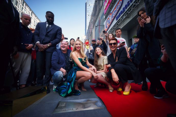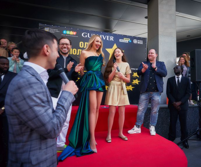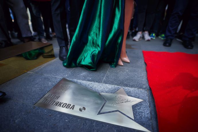 Співачка Оля Полякова отримала іменну зірку на “Площі зірок” у центрі Києва. На церемонію поп-діва прийшла у зухвалому міні, але зі шлейфом, а в якості групи підтримки привела старшу дочку Машу.