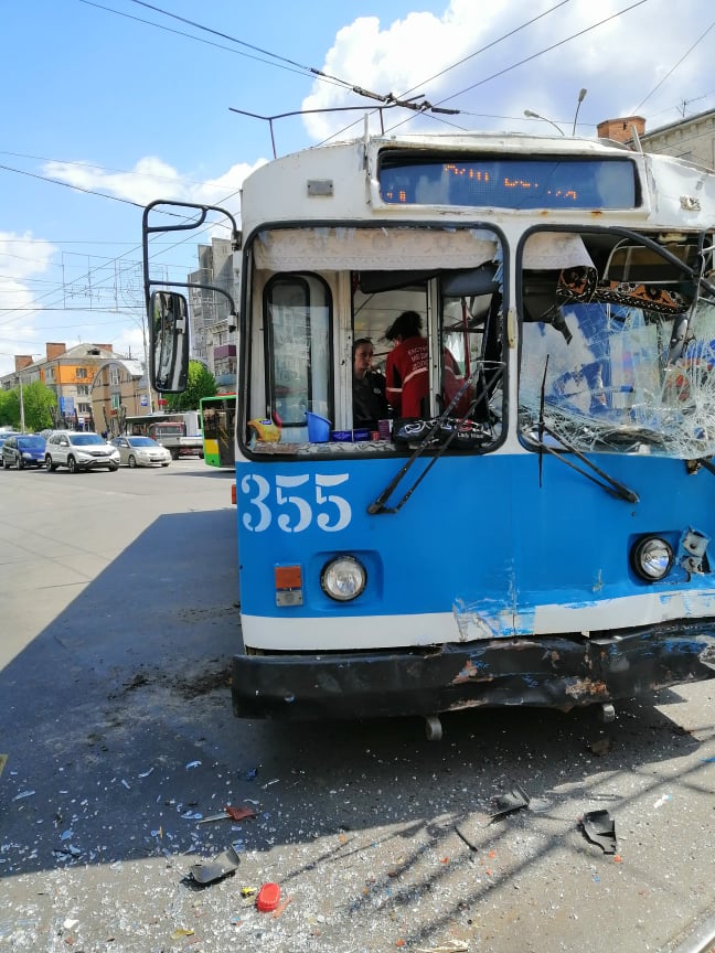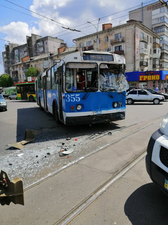 У тролейбуса – розбито лобове скло, в трамвая – два бокові вікна.