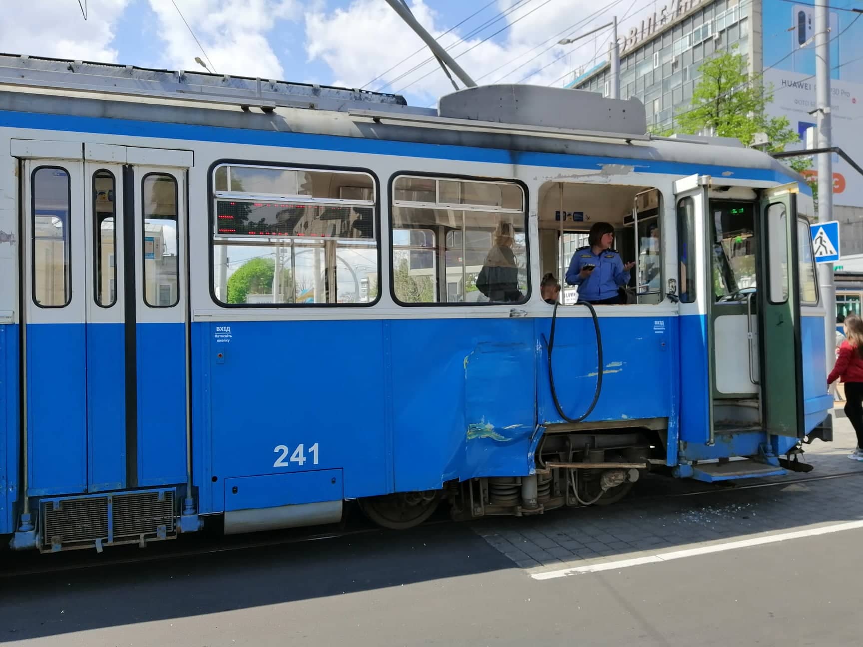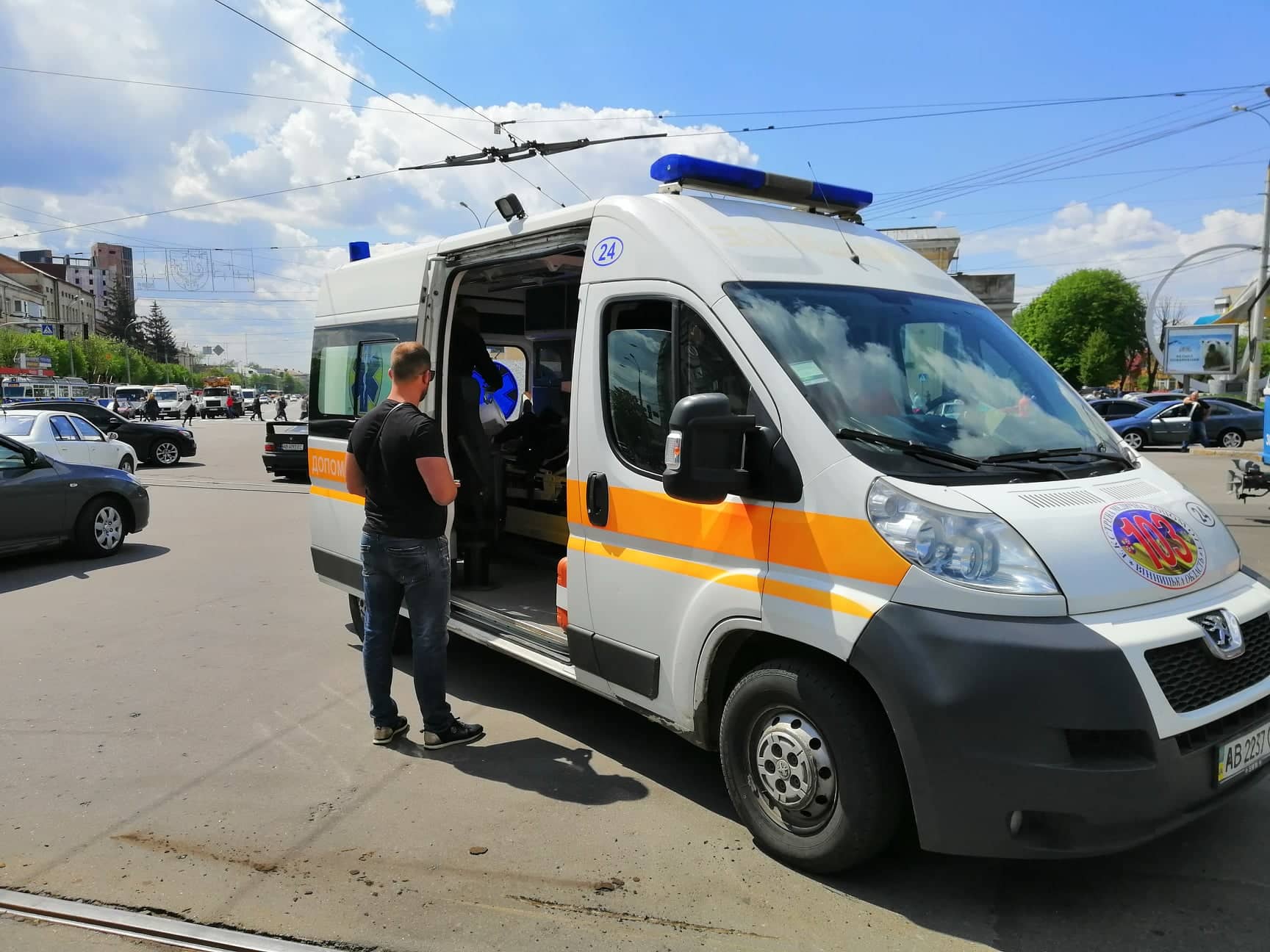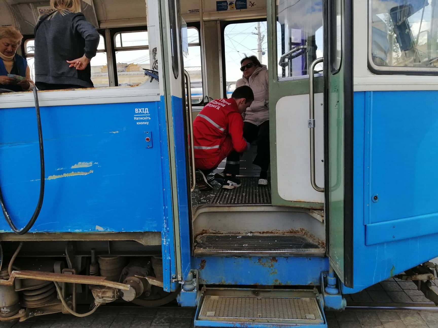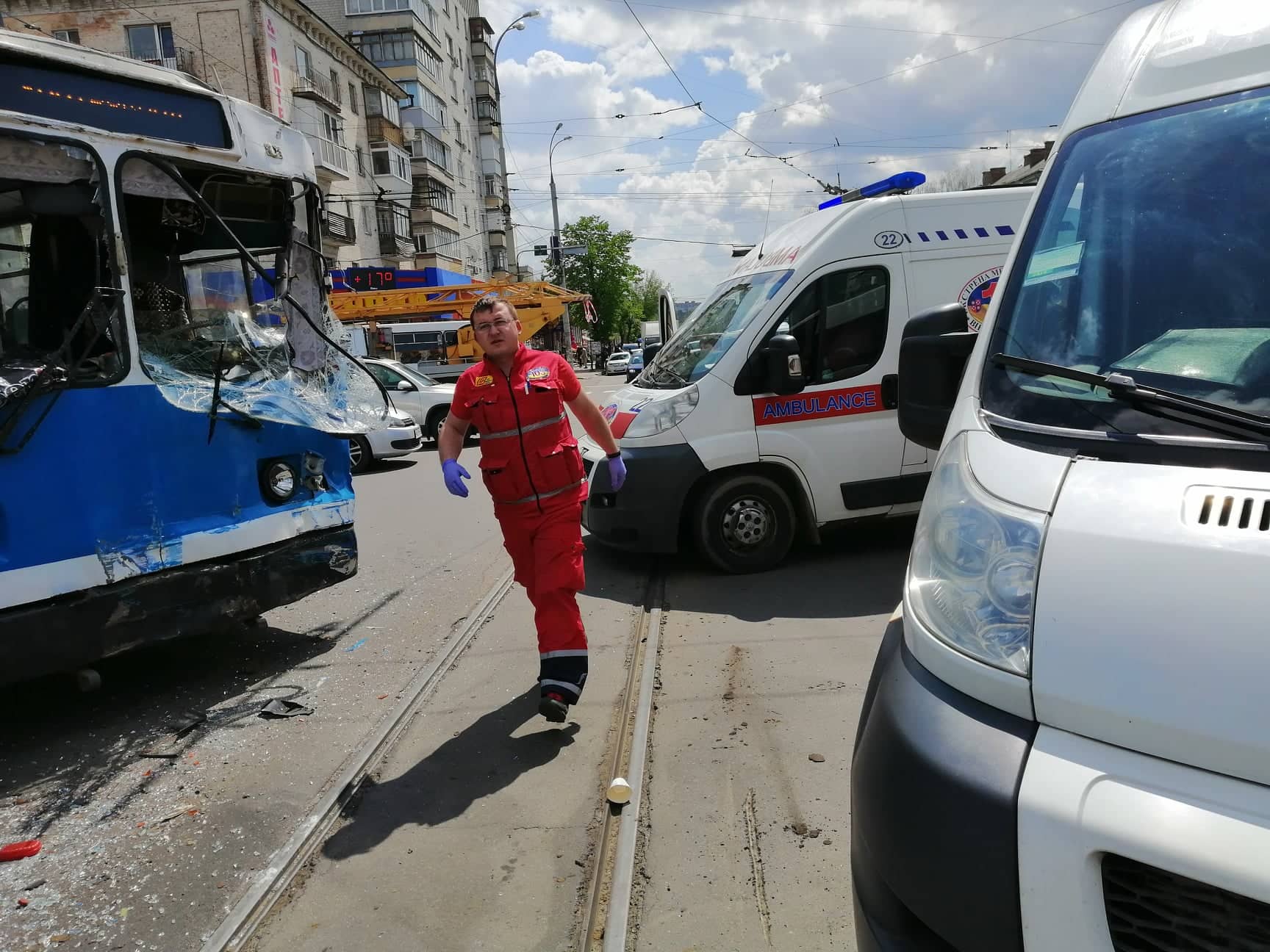 На місці аварії працюють екіпажі двох карет швидкої допомоги. В одній із «швидких» медики опікуються дівчиною із рваною раною на лобі. З трамваю виводять травмовану жінку. Трьом пасажирам тролейбусу вдягнули медичні нашийники.