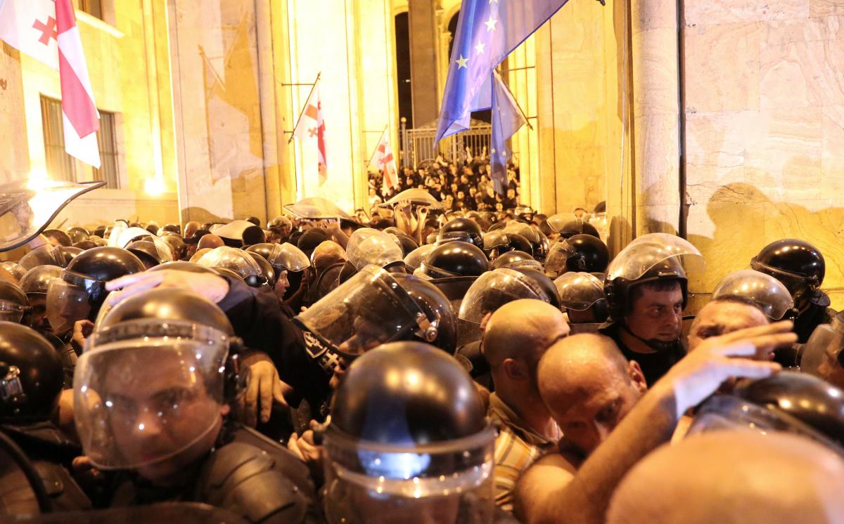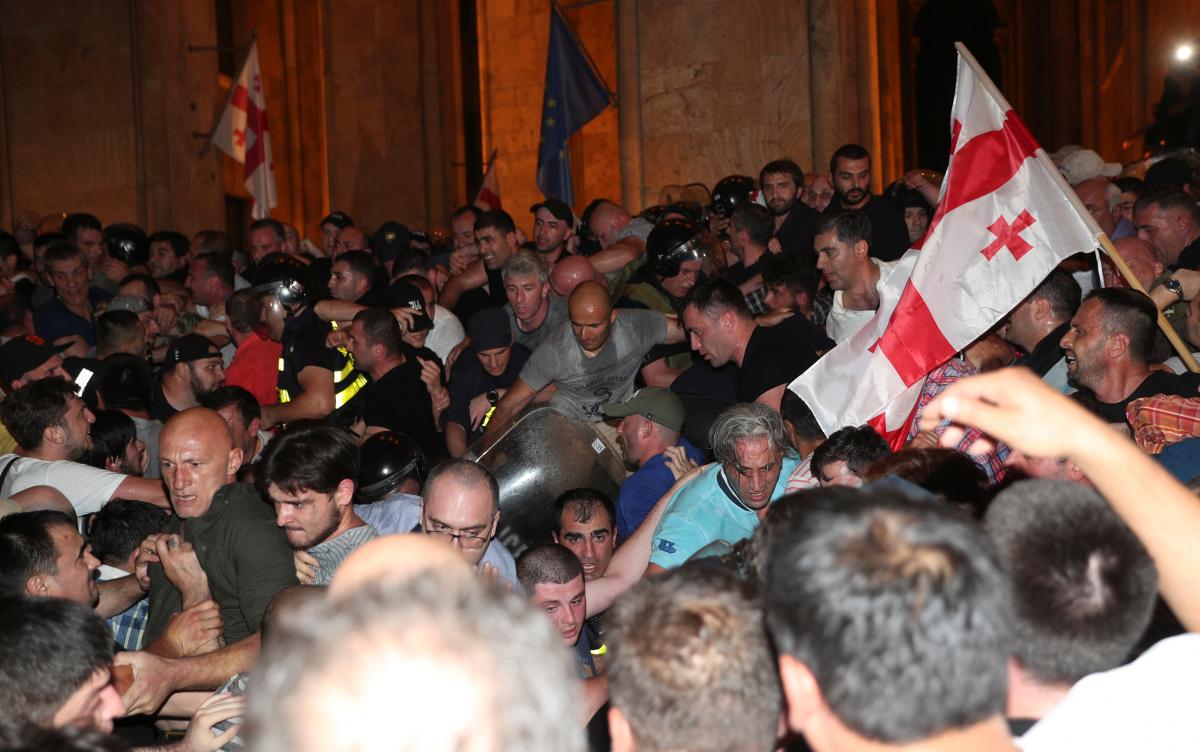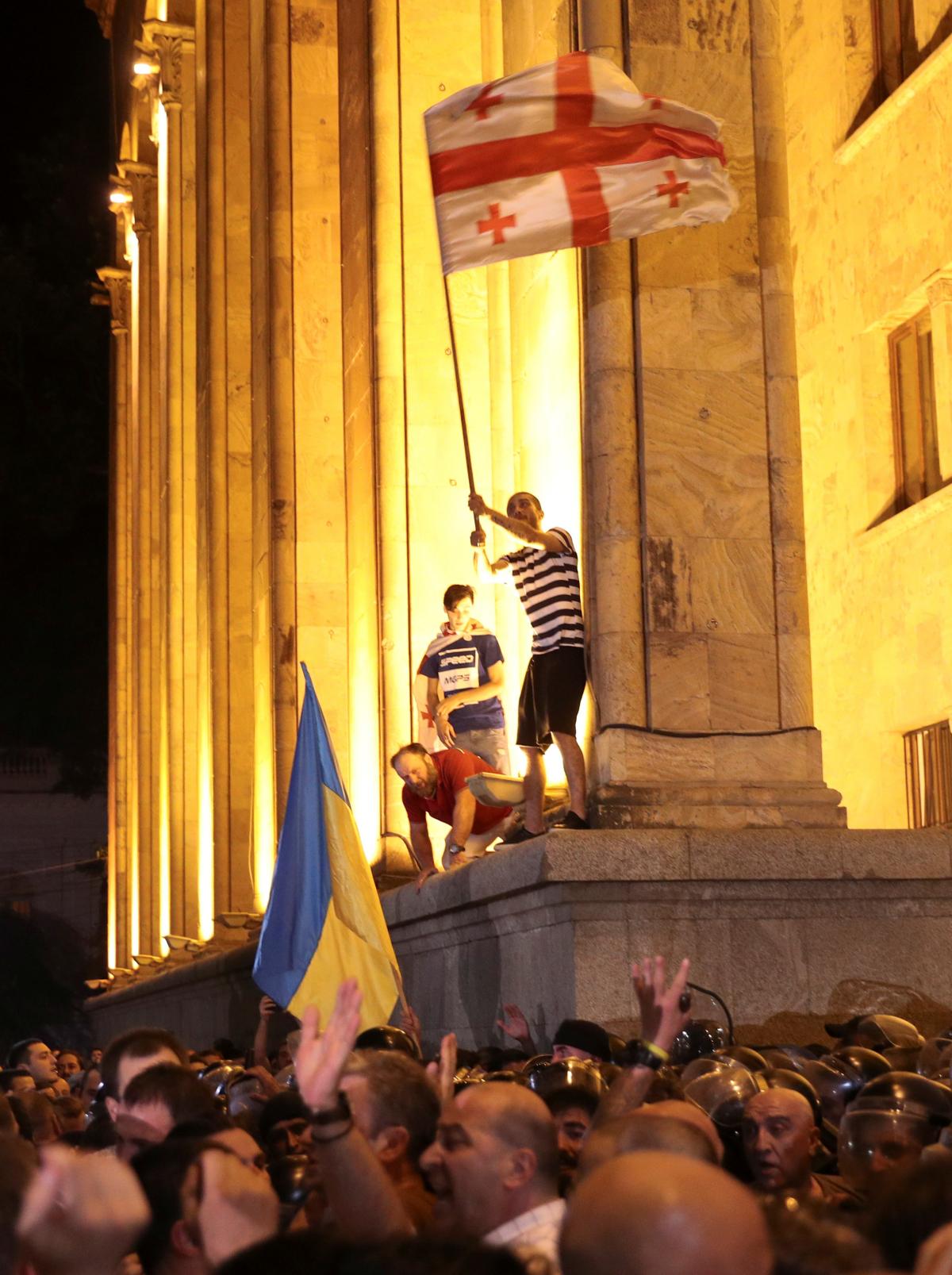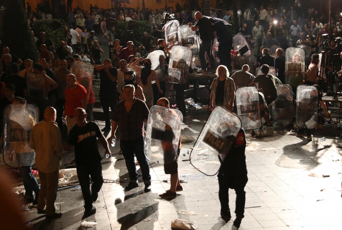 Російській делегації довелось терміново у супроводі охорони покинути парламент та вилетіти назад до Росії. Водночас, акції протесту перейшли у активну фазу – в Тбілісі біля будівлі відбулися сутички між протестувальниками та правоохоронцями.
