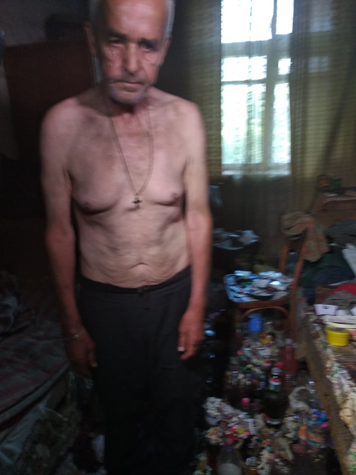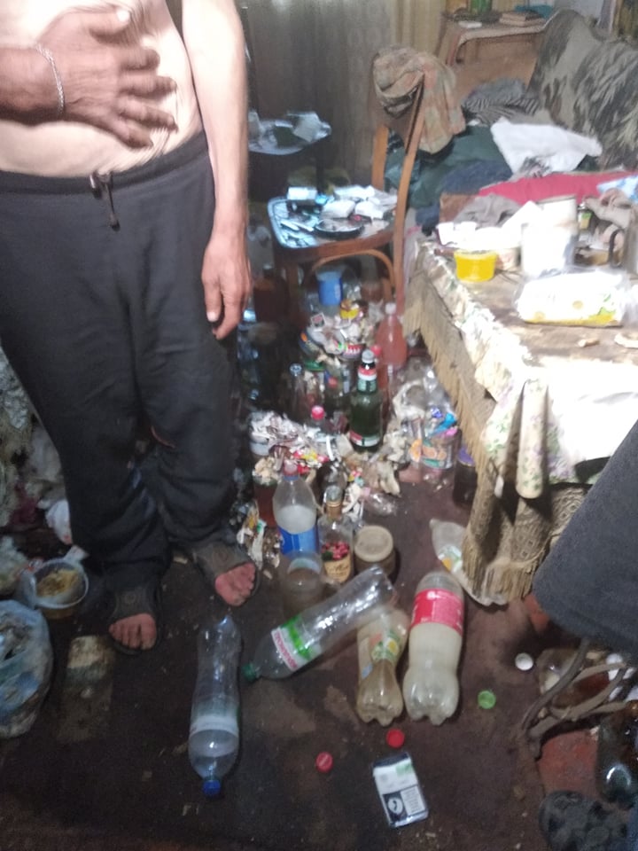 У  цій квартирі в старенькій двоповерхівці знаходитися довше п’яти хвилин неможливо. Смердить страшенно, бо скрізь стоять відра з сечею. Їдкий запах роз’їдає очі і не дає дихати. Та це зовсім не заважає власнику квартири Анатолію Волощуку. За два роки він перетворив на туалет усі свої три кімнати.  Сеча та фекалії – всюди. Говорить, що каналізації в будинку немає, а ходити у туалет на вулицю, як усі сусіди, – не може. Тож замість унітазу – в нього відра, пластикові пляшки та навіть тарілки. Іноді випорожнюється просто на підлогу. Все це тече в під’їзд та квартири сусідів. Люди не витримали і ледь не силоміць змусили чоловіка  винести частину бруду  на смітник. А ще частину залишив просто в під`їзді.