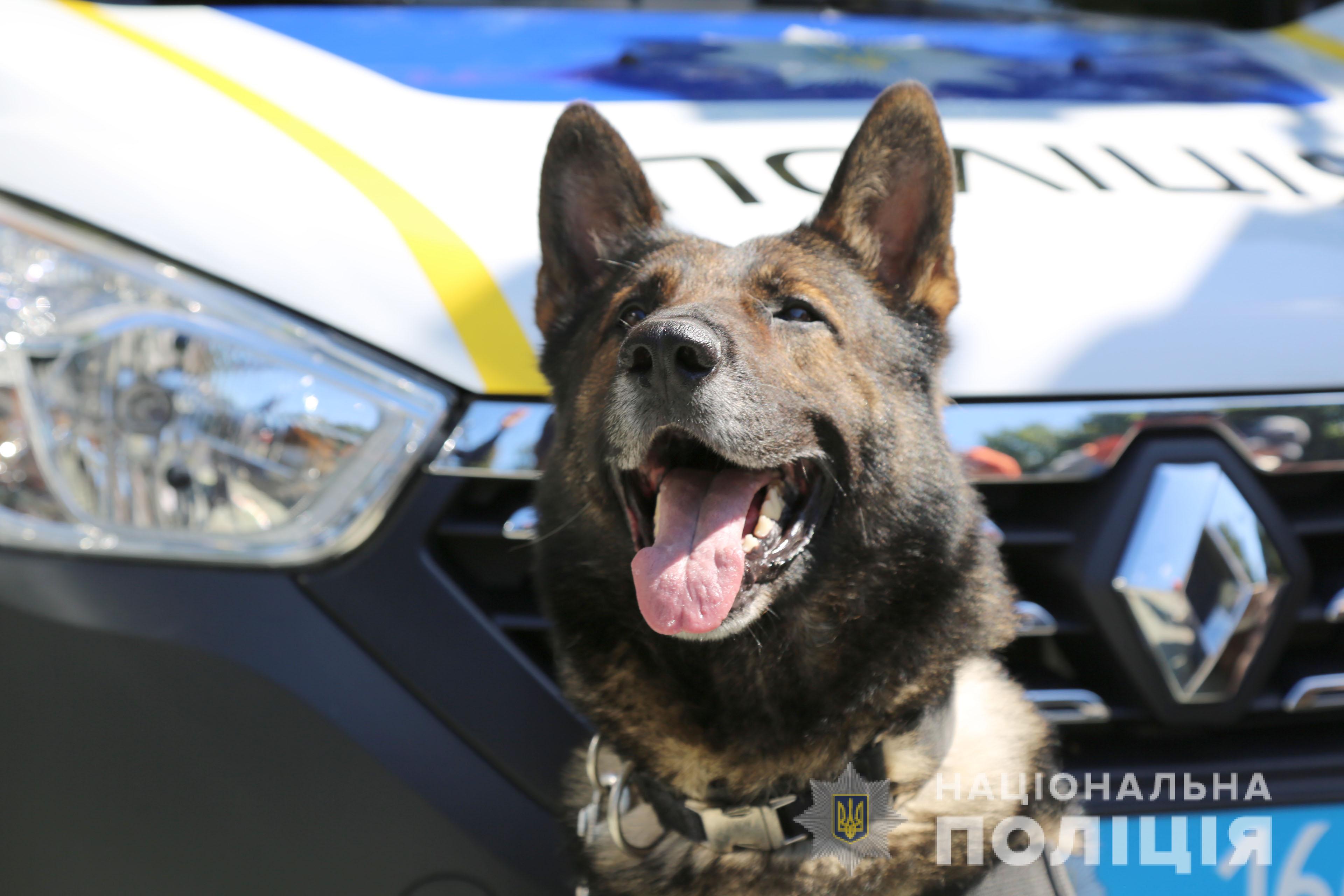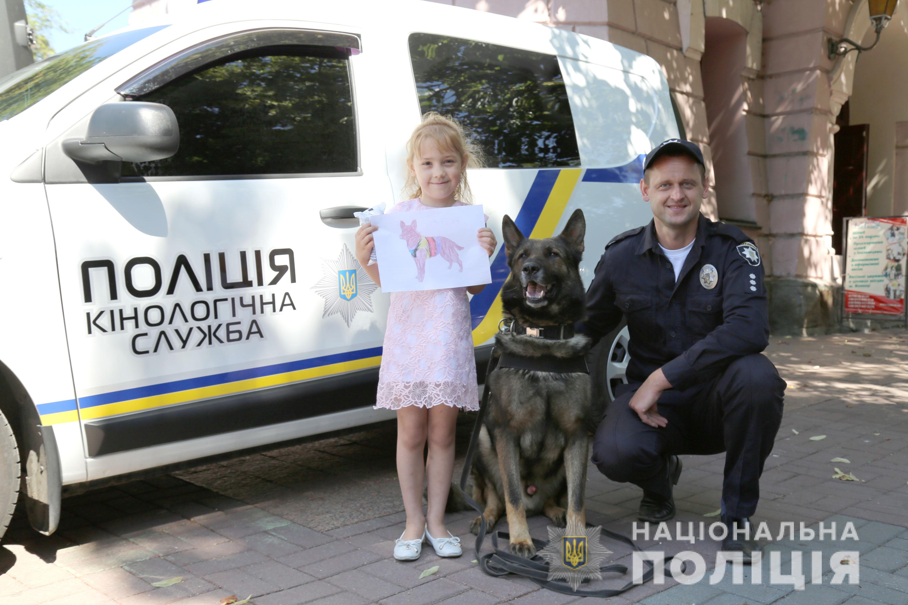 Свої навички та вміння, отримані під час роботи в поліції, дітям показав службовий пес Ден, з яким діти на згадку фотографувались та робили селфі.