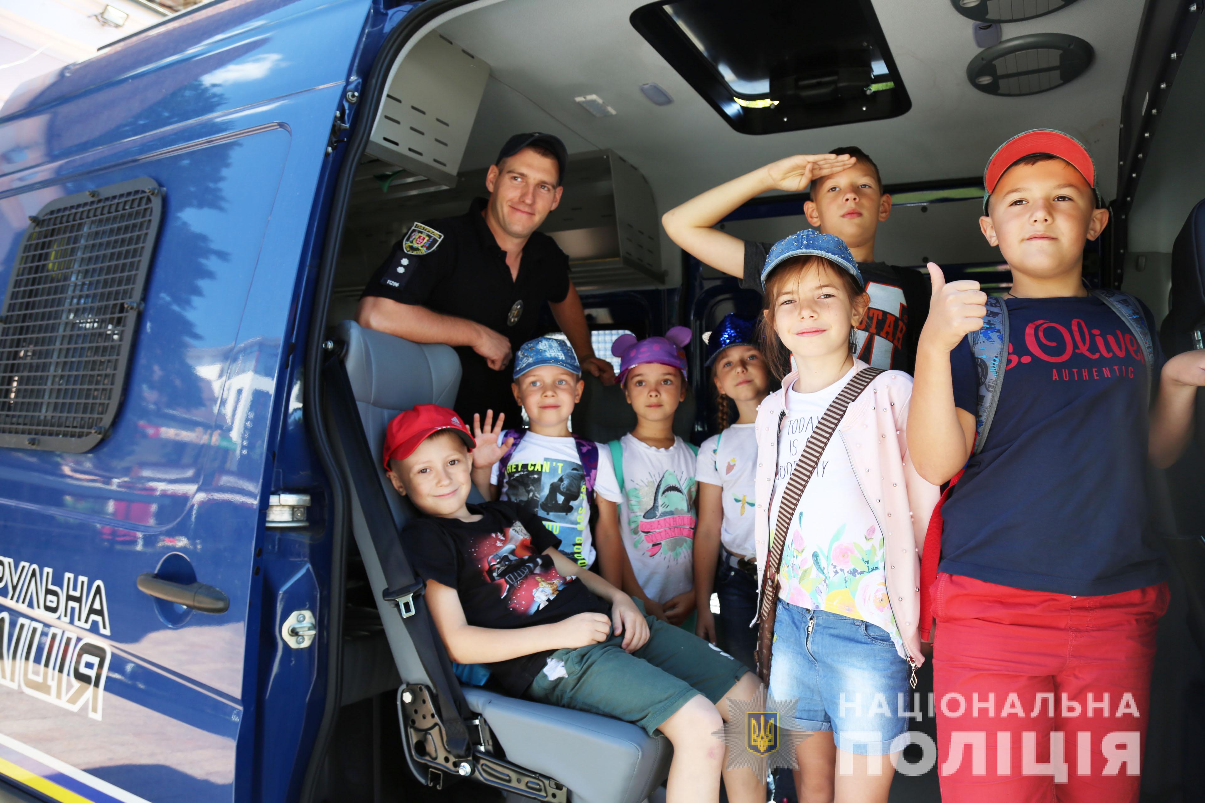 Працівники патрульної поліції катали малечу у справжньому поліцейському автомобілі з увімкненими проблисковими маячками. Також діти вправлялися у знаннях з правил дорожнього руху на спеціалізованому майданчику.