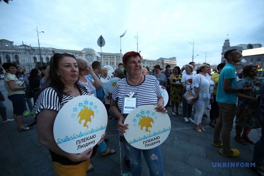 Учасники EdCamp провели флешмоб / Фото: В`ячеслав Мадієвський, Укрінформ