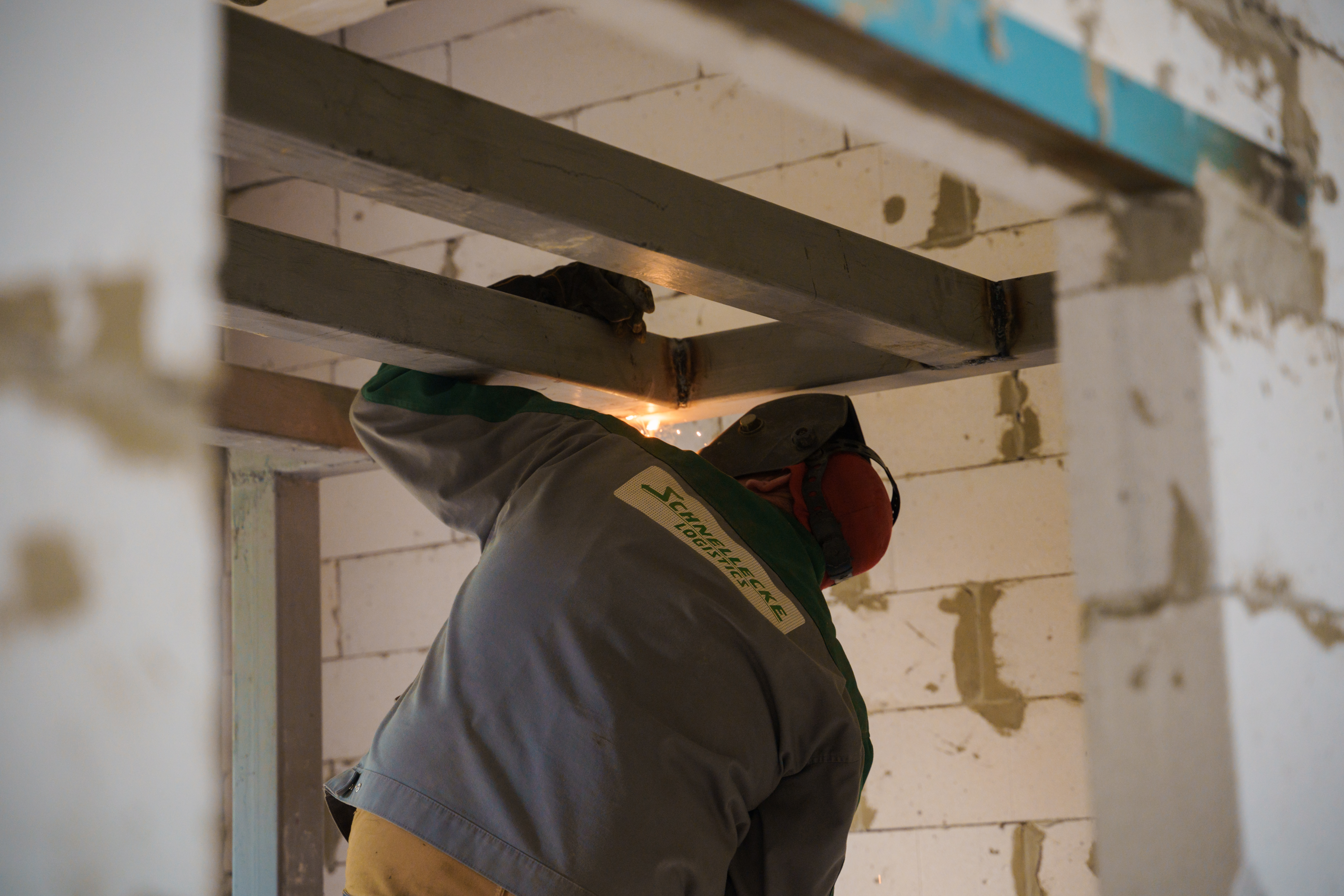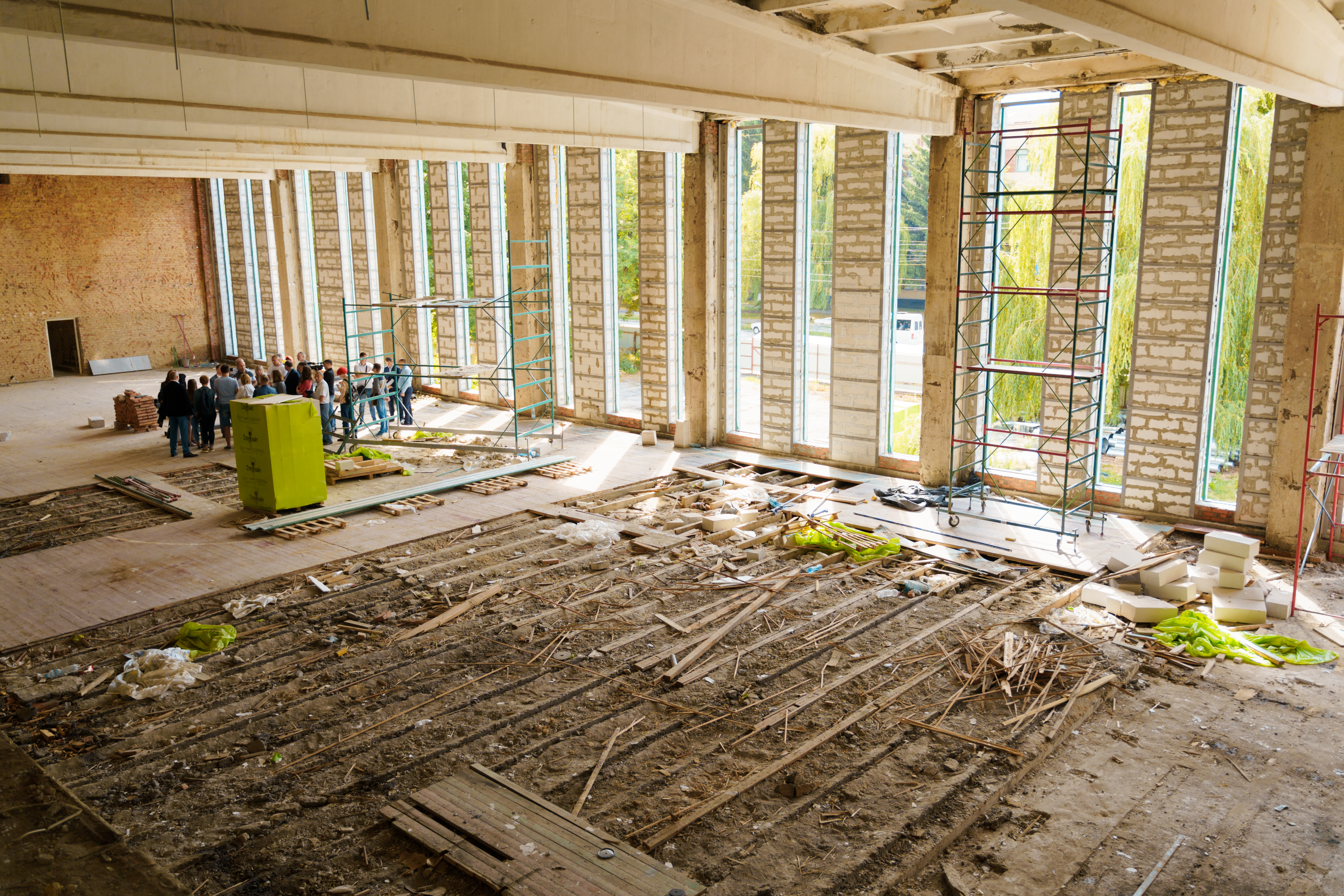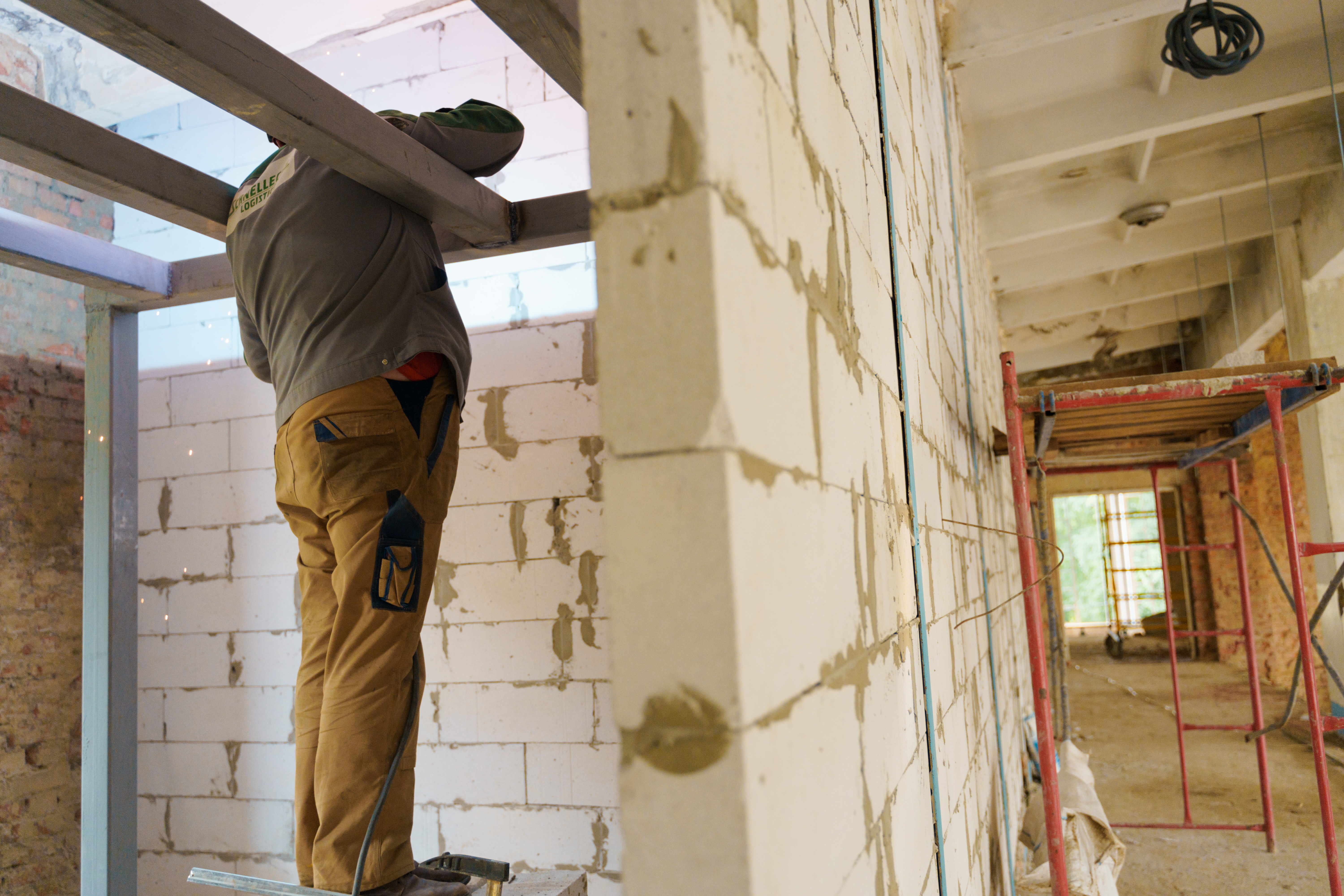 У спорткомплексі вже встановлено фундаментні балки під стіни першого поверху на південному фасаді, зроблено монолітні пояси на рівні покрівлі, нові віконні прорізи на фасадах будівлі. Завершується підсилення стін будівлі. Робітники утеплюють фасад, установлюють покрівлю. Виконано заміну двох прогонів та плит покриття приміщення басейну, роботи по підсиленню існуючих плит покриття. Замінено плити перекриття на обхідних доріжках басейну. Підсилено колони під чашею басейну, проводяться роботи по підсиленню чаші басейну. Виконується влаштування вентиляції, господарської каналізації та прокладка електропроводки.