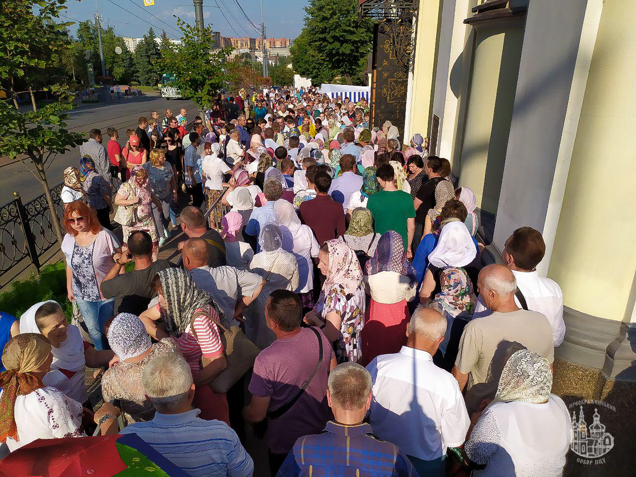 Богослужіння відбувалося на вулиці перед храмом. У безпосередній близькості від вірян ПЦУ молилися й представники УПЦ, що є частиною Московського Патріархату. Потужне звукове підсилення, яке вони використовували, звичайно ж, заважало богослужінню, але не стало перешкодою щирій молитви вірян Помісної Української Церкви.