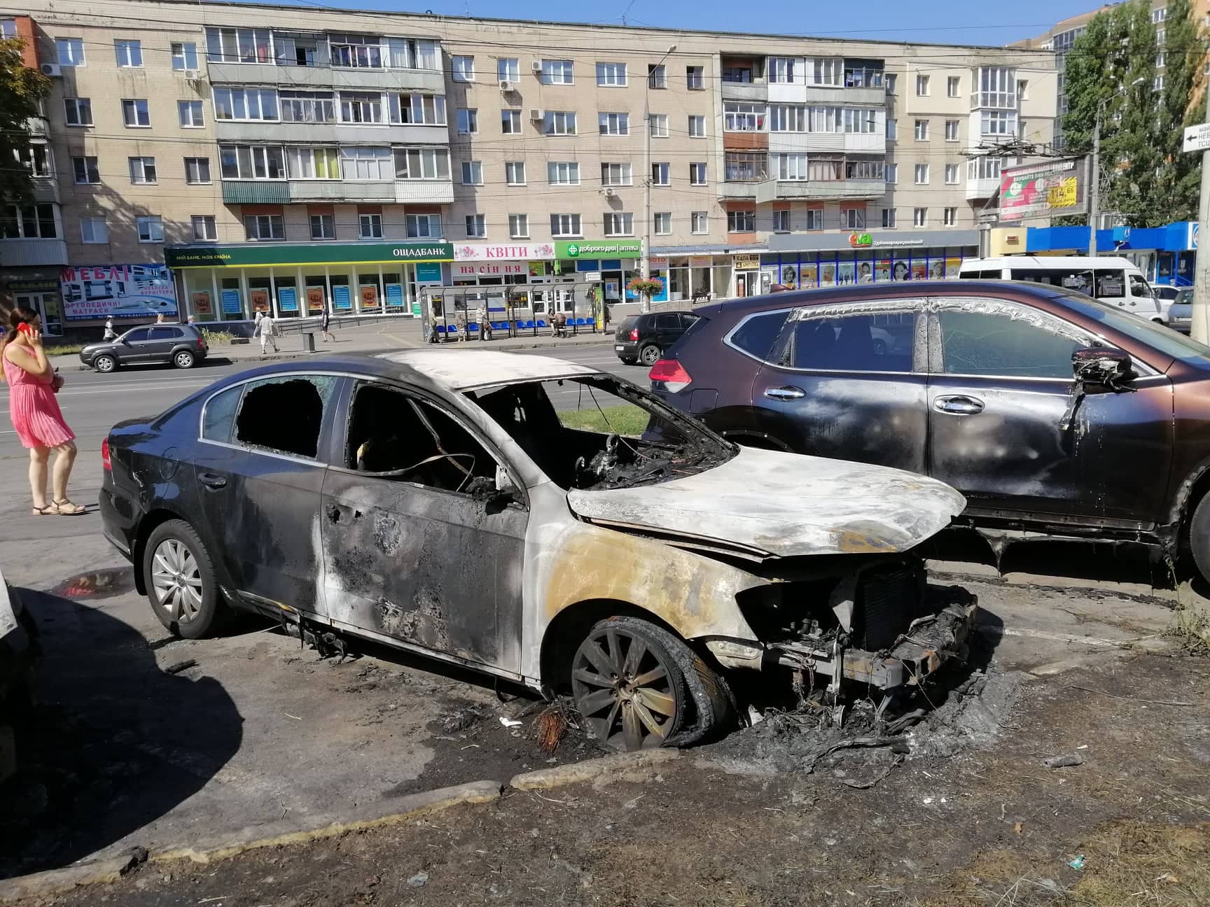 Виїздом слідчо-оперативної групи поліції на місці події встановлено, що вогнем пошкоджено автомобілі, які належать подружжю вінничан. На місці проведені першочергові слідчі дії.