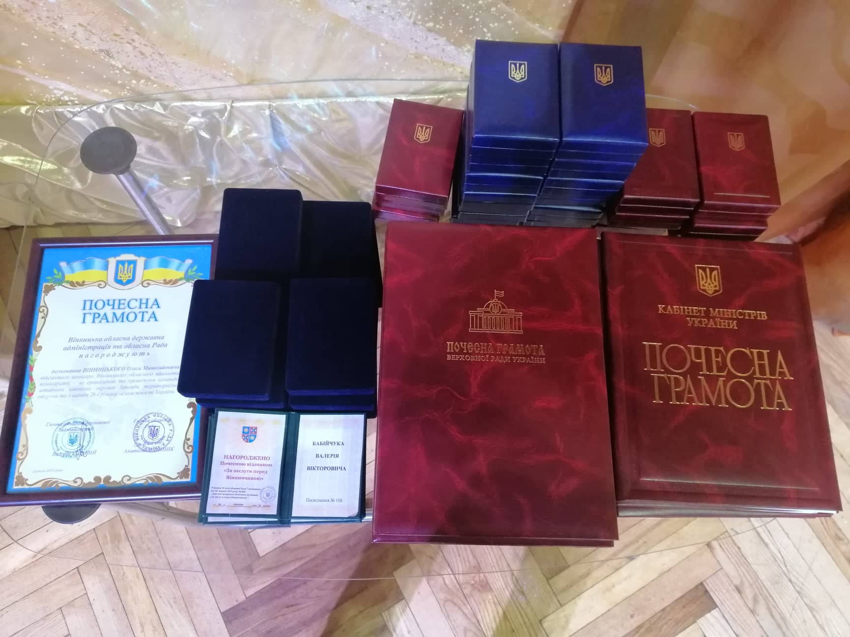Голова Вінницької ОДА Валерій Коровій, голова облРади Анатолій Олійник та Вінницький міський голова Сергій Моргунов спільно привітали земляків, удостоєних державних нагород і Почесних відзнак Кабінету Міністрів України та Верховної Ради України, а також вінничан, які, за визначенням обласної конкурсної комісії, отримали найвищу місцеву відзнаку – «За заслуги перед Вінниччиною».
