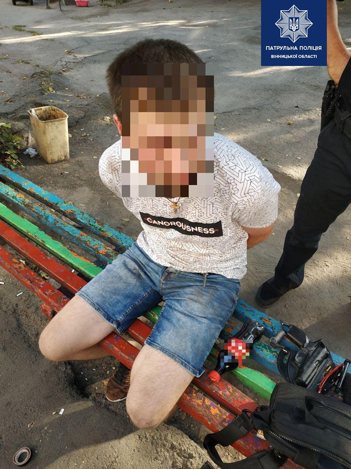 Cьогодні, 27 серпня, у Вінниці неподалік лікарні по вулиці Київській працівники патрульної поліції затримали чоловіка, який шляхом «закладок» розповсюджував наркотики. Під час огляду у правопорушника, крім згортків з амфетаміном та метадоном, поліцейські вилучили пістолет з набоями.