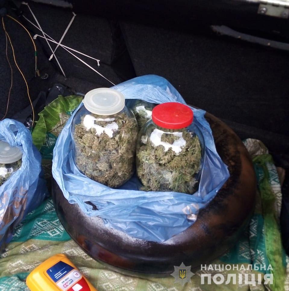 У багажнику автомобіля Skoda, який належить правопорушнику, працівники поліції вилучили два пакети з 6 трилітровими банками, наповненими сушеними верхівками конопель. Крім цього, у майстерні виявили пачку від цигарок з подрібненою речовиною зеленого кольору та саморобний пристрій для її куріння.