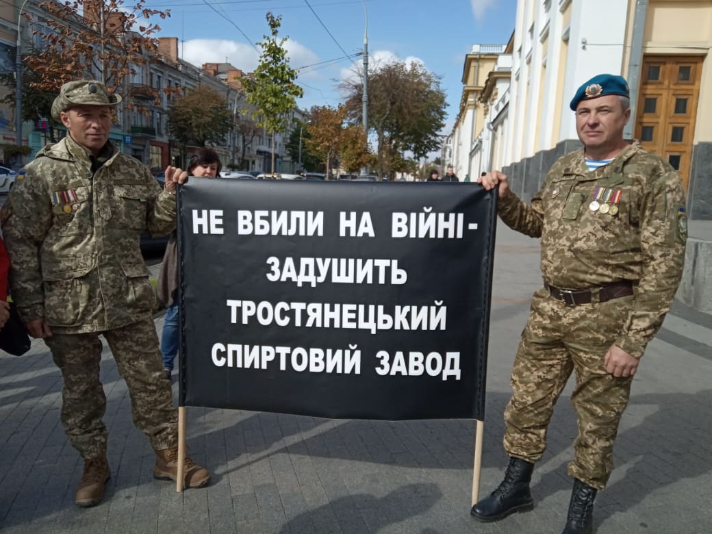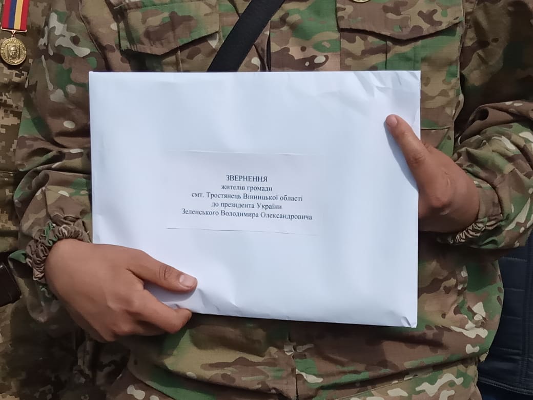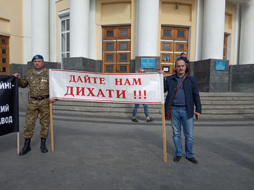 Представники релігійної громади села Лаврівка Вінницького району розповідають, що ще в лютому проголосували за перехід до ПЦУ, однак місцевий священик залишився вірний УПЦ (МП) і не допускає до богослужінь вірян помісної церкви. Поруч із ними з транспорантами стоять мешканці Тррстянця, які потерпають від шкідливих викидів місцевого спиртзаводу.