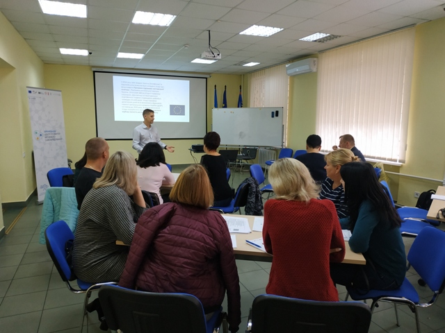 Учасники – працівники з місцевого розвитку та інвестицій громад – знайомляться із Програмою підтримки секторальної політики України з боку Євросоюзу та критеріями оцінки і формою проектів для подачі на конкурс. Про пошук ідей, аналіз зацікавлених сторін, SWOT аналіз та логіко-структурну матрицю як спосіб швидкої оцінки спроможності проектної ідеї розповідає Юрій Войціцький – тренер, радник з регіонального розвитку Вінницького ЦРМС. За словами експерта, під час тренінгу учасники зосередяться на підготовці якісних проектів ОТГ області для участі у ІІ Конкурсі проектів регіонального розвитку секторальної підтримки ЄС.