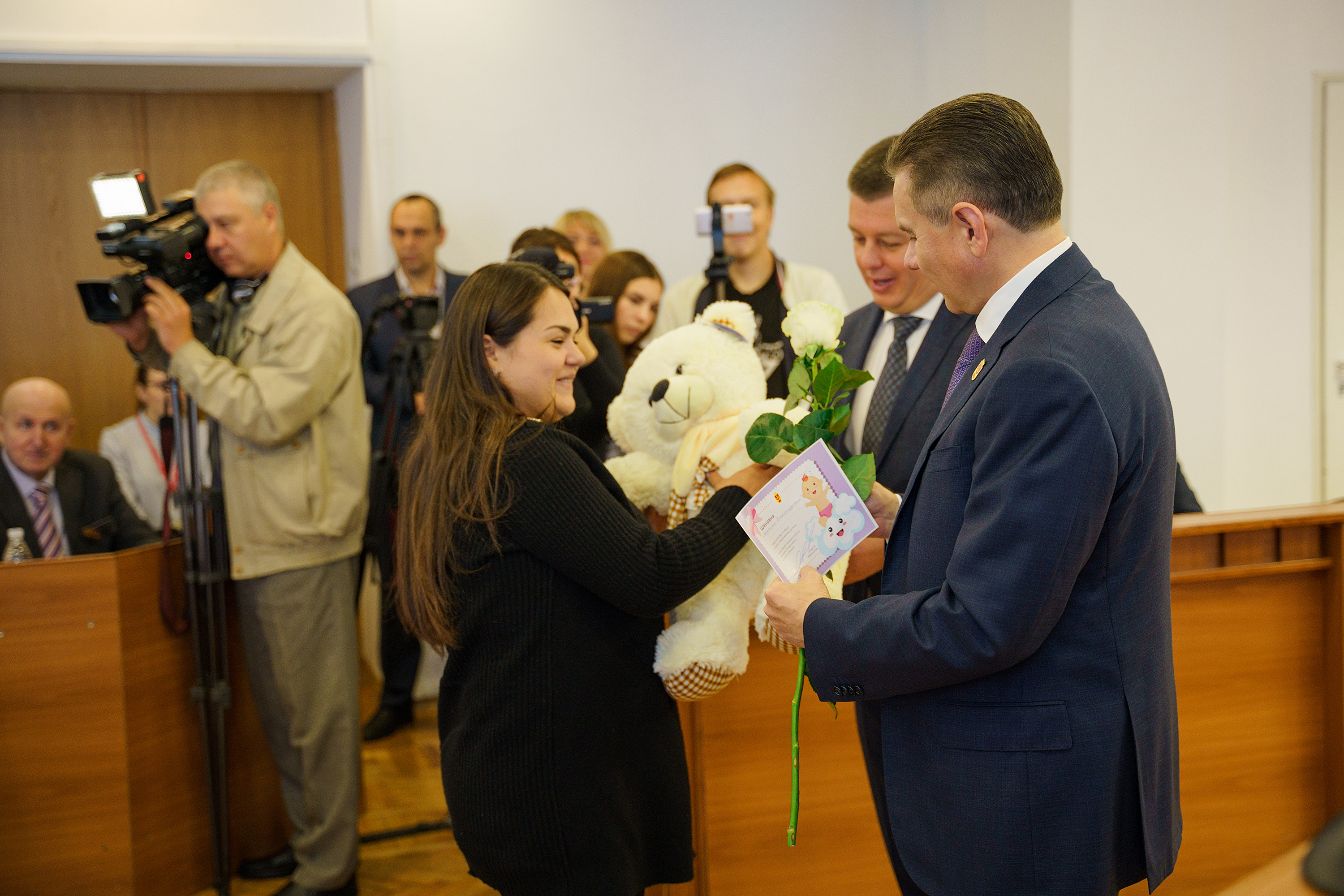 Сьогодні, 4 жовтня, під час чергової сесії міської ради вітали батьків, у яких народились діти на День міста. Їм подарували коляски, іграшки, вітальні листівки та квіти.