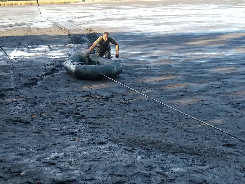 Бершадські лісівники швидко зібрали людей, знайшли човен та захисні костюми. Спільними зусиллями тварину витягли з болота на берег.