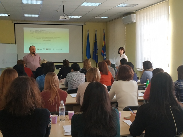 Вінницький Центр розвитку місцевого самоврядування Програми « U-LEAD з Європою» запросив представників фінансових підрозділів ОТГ Вінниччини на тренінг «Формування бюджету на 2020 рік. Складання паспортів бюджетних програм». Інна Святна, радниця з місцевих фінансів Центру, запропонувала учасникам ознайомитись із механізмами моделювання бюджетного процесу з урахуванням середньострокового планування та проектами змін до законодавства. Експерт роз’яснила фінасистам громад особливості формування бюджетних запитів у 2019 році та паспортів бюджетних програм: