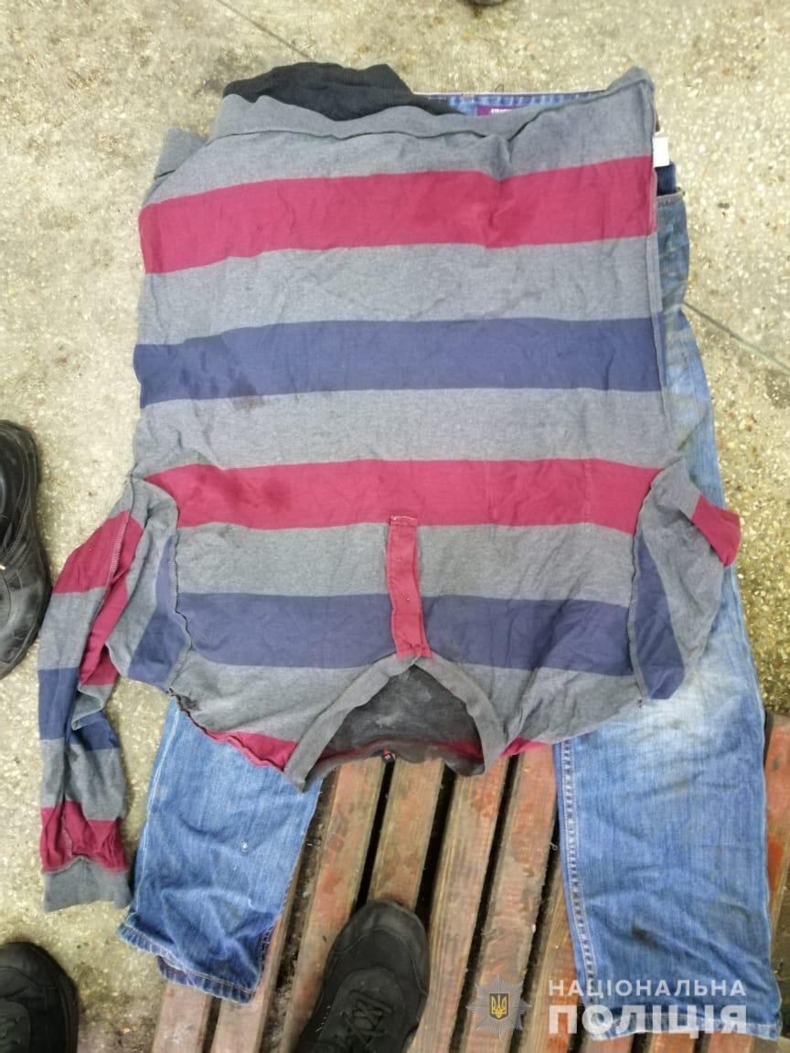 Був одягнений: куртка сірого кольору на блискавці «Happytex Original», сірий светр в синьо-рожеву смужку «Robson» 58 розміру, шкіряні чорні кросівки «ЕССО» 41 розміру, сині джинси, чорний шкіряний ремінь.