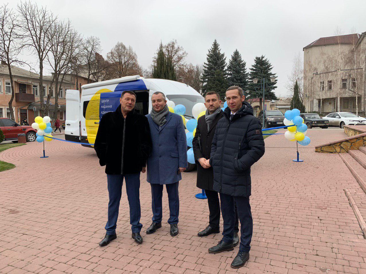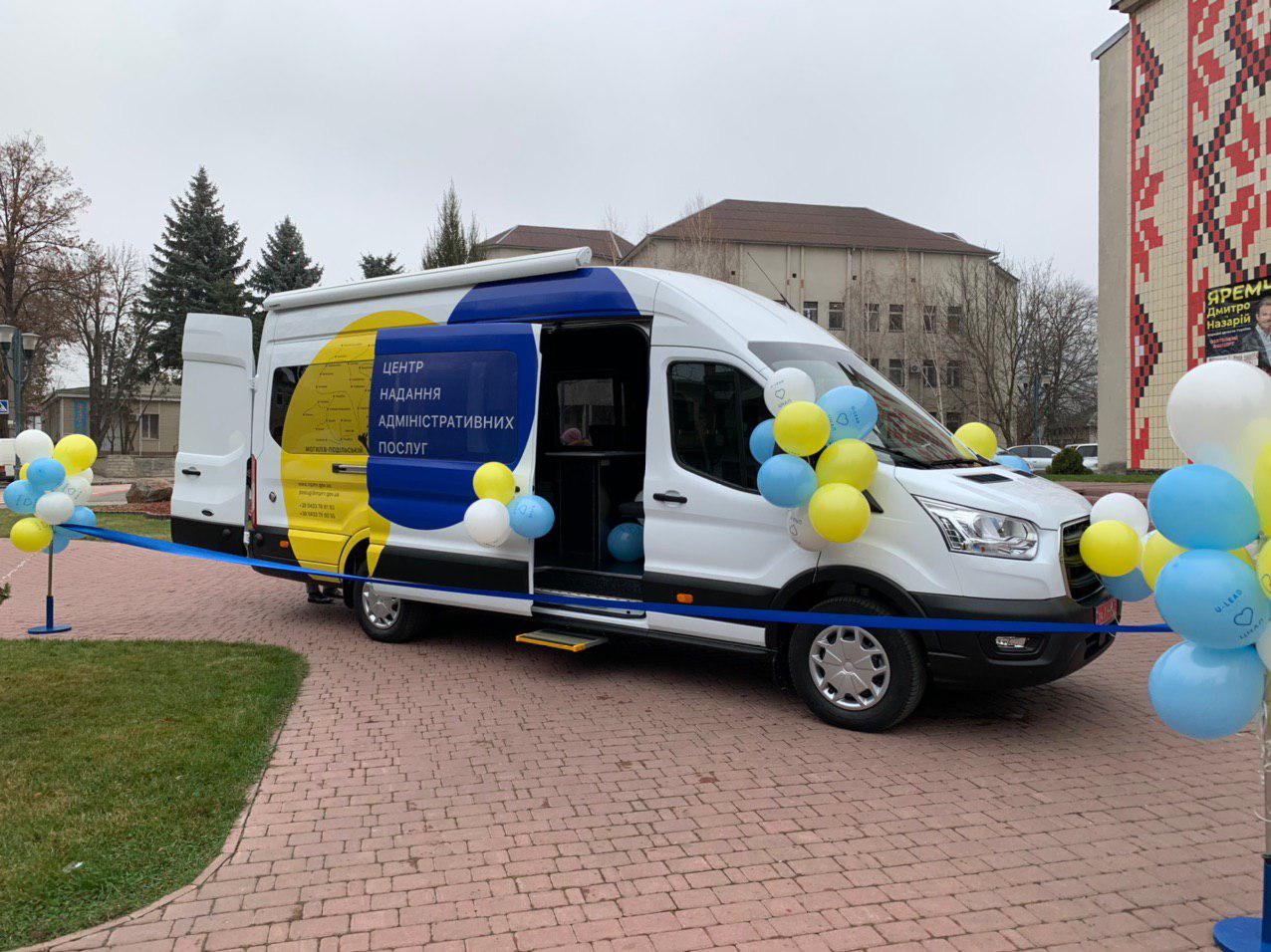 Мобільний центр надання адміністративних послуг – це спеціальне авто, повністю облаштоване для двох адміністраторів та трьох відвідувачів, яке працює в форматі повноцінного офісу ЦНАП та надає послуги у форматі «єдиного вікна» безпосередньо в селищах та селах. «ЦНАП на колесах» також обладнаний мобільною валізою для отримання послуг вдома та пандусом для обслуговування осіб з інвалідністю.