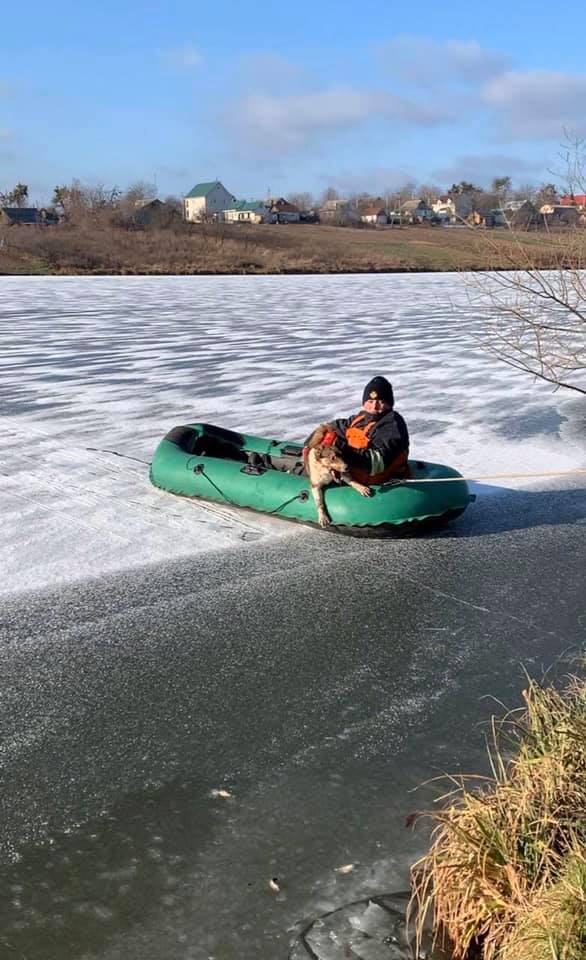 На Вінниччині в селищі Вороновиця рятувальники витягли собаку з центру замерзлої водойми.
