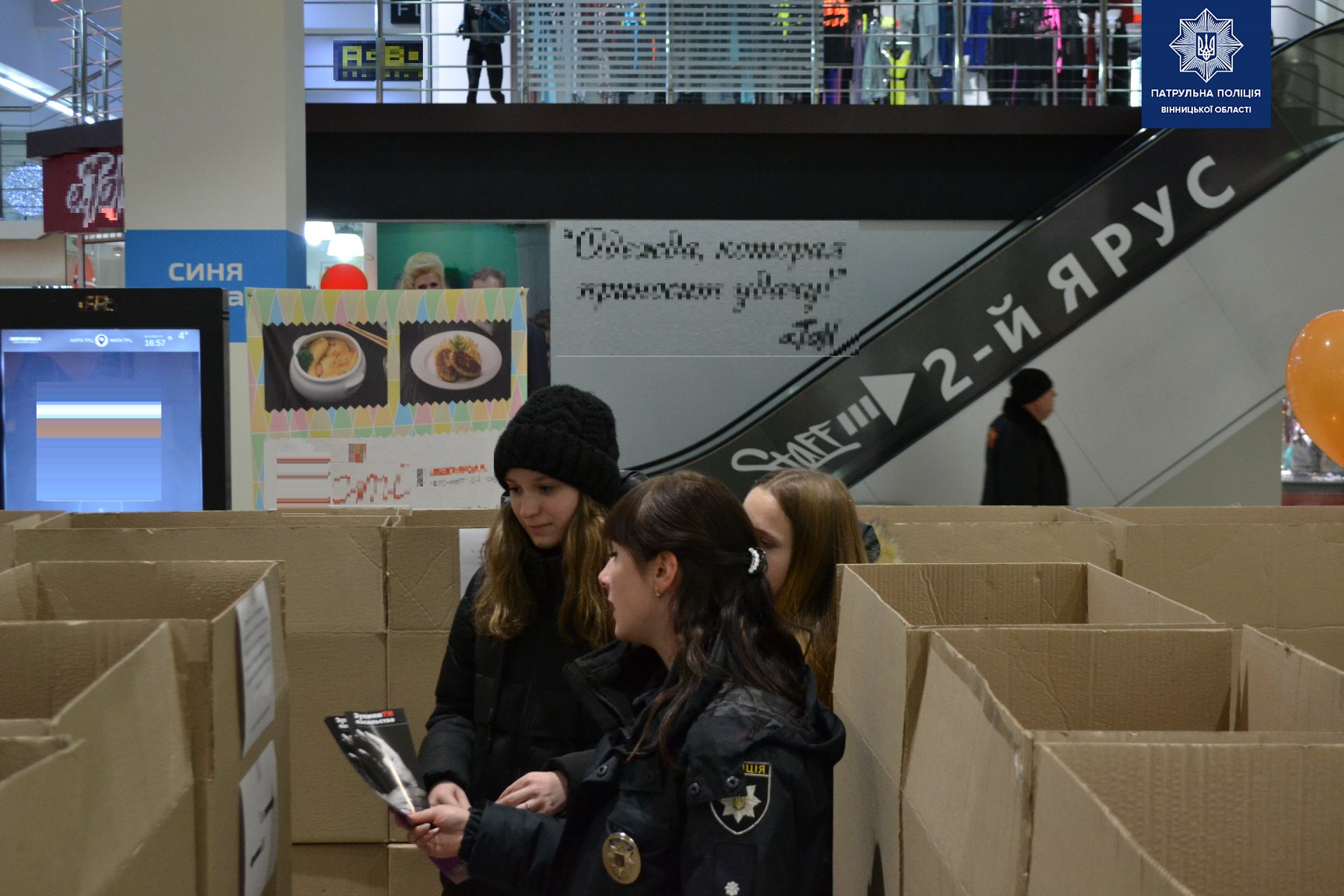 У Вінниці в рамках проведення всеукраїнської акції «16 днів проти насильства» патрульні поліцейські спільно волонтерами та Департаментом соціальної та молодіжної політики в одному з торговельно-розважальних центрів організували масову акцію з використанням інтерактивних правопросвітницьких методів під умовною назвою «Лабіринт».