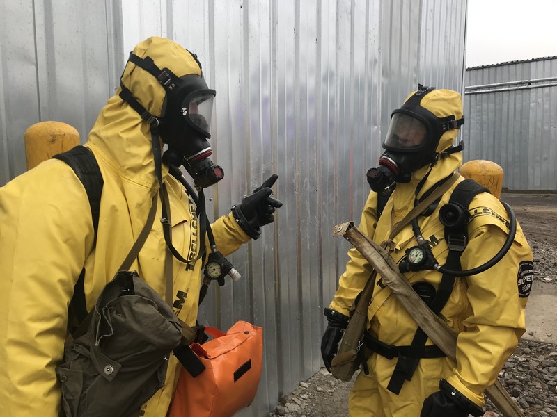 За тактичним задумом тренувань, в одному з приміщень із холодильним технологічним обладнанням виникло загоряння із загрозою викиду небезпечної хімічної речовини. Внаслідок пожежі відбулася розгерметизація місткості з аміаком. На момент виникнення умовної надзвичайної події, в приміщенні знаходилося чотири людини.