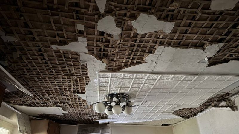 “Я проснулася, почула, що ракети летять, підвищена небезпека, але втекти не встигла. Воно як бахнуло, хата затрусилася, все посипалося, біло було від штукатурки. Від вибухової хвилі в кімнатах з боку прильоту все посипалося, в кухні, в спальні, повилітали вікна, карнизи позривало, штори порвало. Стеля майже вся обвалилася, і там, де ми спали, обвалилося. В гаражі, в літній кухні дах знесло, шифер розлетівся. На городі валяються осколки. На хаті кришу погнуло”, — розповіла Надія Боднар.