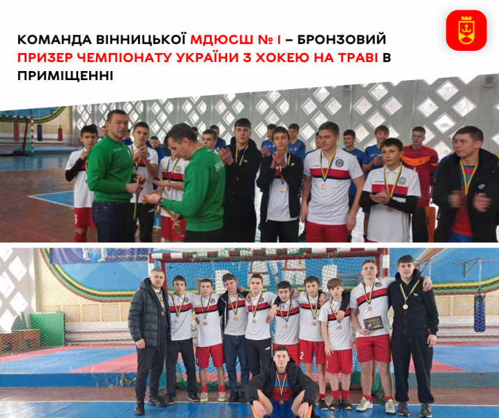 Вихованці міської дитячо-юнацької спортивної школи № 1 повернулися додому із новим досягненням. Команда вінничан виборола бронзові нагороди чемпіонату України з хокею на траві в приміщенні серед юнаків U-18. Змагання тривали з 23 по 25 січня у місті Літин.